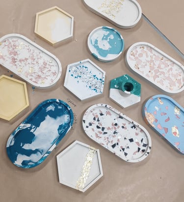 Qu'est-ce que la Jesmonite ? La Jesmonite est un matériau composite à base d'eau, non toxique et sans solvant, qui offre une multitude de possibilités. Facile à manipuler, elle permet de réaliser des créations d'une finesse et d'une durabilité exceptionnelles.